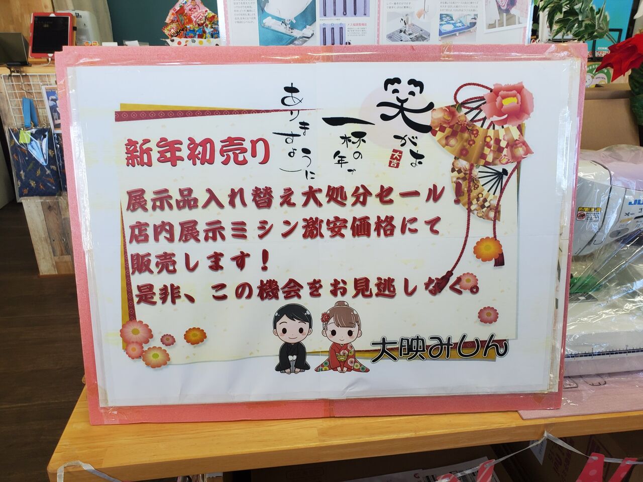 新年初売りセールをおこないますので、大映ミシンにお越しください。